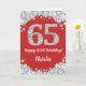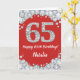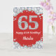 Happy 65th Birthday Red and Silver Glitter Card with personalised name. For further customisation, please click the "Customise it" button and use our design tool to modify this template.