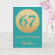 Happy 67th Birthday Teal and Gold Glitter Card with personalised name. For further customisation, please click the "Customise it" button and use our design tool to modify this template.