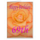 A Birthday greeting card with an image of a beautiful yellow flower with pink trim to each of its petals. The card has the massage “Happy 69th Birthday” in pink lettering. All work and images by martinspixs, come back again soon to see new greeting cards.