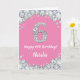 Happy 6th Birthday Pink and Silver Glitter Card with personalised name. For further customisation, please click the "Customise it" button and use our design tool to modify this template.