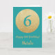 Happy 6th Birthday Teal and Gold Glitter Card