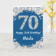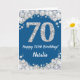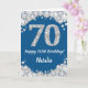 Happy 70th Birthday Blue and Silver Glitter Card with personalised name. For further customisation, please click the "Customise it" button and use our design tool to modify this template.