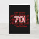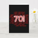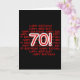 Black, red, and white Happy 70th Birthday design on 70th birthday T-shirts, cards, mugs, buttons, and other 70th birthday items.