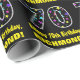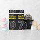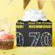 This fun birthday-themed wrapping paper design features a large number "70" filled with a pattern of star shapes having various sizes and colours, along with the message "Happy 70th Birthday,", and an editable name. The background is coloured black. Wrapping paper like this might be a fun way of wrapping a birthday present or gift being given to somebody who is celebrating their 70th birthday. [~Z0000429]