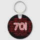 Black, red, and white Happy 70th Birthday design on 70th birthday T-shirts, cards, mugs, buttons, and other 70th birthday items.