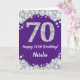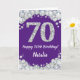 Happy 70th Birthday Purple and Silver Glitter Card with personalised name. For further customisation, please click the "Customise it" button and use our design tool to modify this template.