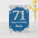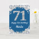 Happy 71st Birthday Blue and Silver Glitter Card with personalised name. For further customisation, please click the "Customise it" button and use our design tool to modify this template.