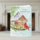 This hand-painted watercolor features a charming birdhouse adorned with a Happy Birthday banner, as a tufted titmouse and a cardinal stop by on a crisp winter day. Soft seasonal details and gentle colors create a warm, thoughtful scene, making it a lovely birthday piece for someone celebrating their 75th birthday!