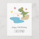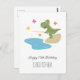 Happy 75th Birthday Cute Cartoon Dinosaur Fishing Postcard