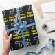 This fun birthday-themed wrapping paper design features a large number "76" filled with a pattern of star shapes of various colours and sizes, along with the message "Happy 76th Birthday,", and an editable name. The background is coloured black. Wrapping paper like this might be a fun way of wrapping a birthday present or gift being given to somebody who is celebrating their 76th birthday. [~Z0000429]