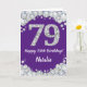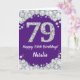 Happy 79th Birthday Purple and Silver Glitter Card with personalised name. For further customisation, please click the "Customise it" button and use our design tool to modify this template.