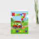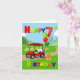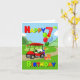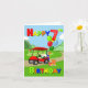 Zooming into the birthday scene, a bright red golf cart brings excitement and cheer! Up front sits a festive golf-themed cake, while the back is stacked with colourful presents and balloons topped off with a giant number 7 balloon. With bold primary coloured text, this card is perfect for celebrating a little boy’s special day.