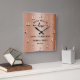 This gift was supposed to be a product made of copper- which is the substance that represents 7 years of marriage. The seller said that if I paid an extra $25.00 I would get it in time for my anniversary. It came 2 days late and I had nothing for my husband. I was very upset. And it is covered in plastic and doesn't even look like real copper. I thought this was going to be an excellent high quality gift. My husband did not like it either. It has grown on me a little because the layout and style of lettering is nice. But I will never order from Zazzle again. That was nice as I just stated. But everything else was wrong. I paid over $60.00 for something that looks very cheap and probably cost $10.00 to make.