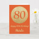 Happy 80th Birthday Orange and Gold Glitter Card