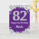 Happy 82nd Birthday Purple and Silver Glitter Card