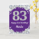 Happy 83rd Birthday Purple and Silver Glitter Card