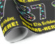 This fun birthday themed wrapping paper design features a large number "87", filled with a pattern of star shapes having various sizes and colours. It also features the message "Happy 87th Birthday,", and an editable name. The background is coloured black. Wrapping paper like this might be used when giving a gift or present in honour of somebody’s eighty seventh birthday. [~Z0000429]