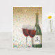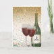 Green wine bottle with two red wine in glasses and confetti for 8th wedding anniversary.