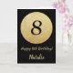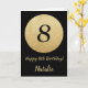 Happy 8th Birthday Black and Gold Glitter Card with personalized name. For further customization, please click the "Customize it" button and use our design tool to modify this template.