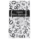 This over-the-hill numeric design is a black and white random number pattern with milestone number 90 repeated in varied sizes and angles in an all-over print. There is a printed ribbon banner and gift tag with text templates so you can easily personalise them with your own words, name, initial, or monogram.