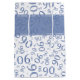 This over-the-hill numeric design is a blue and white random number pattern with milestone number 90 repeated in varied sizes and angles in an all-over print. There is a printed ribbon banner and gift tag with text templates so you can easily personalise them with your own words, name, initial, or monogram.