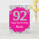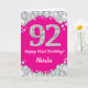 Happy 92nd Birthday Hot Pink and Silver Glitter Card