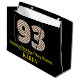 This simple and fun Christmas-themed and birthday-themed December 25th birthday gift bag design features a large number "93", with a red, white, and green stripes pattern. It also features the message "Happy 93rd Birthday & Merry Christmas,", and an editable name. The background is coloured black. A gift bag like this might be fun to use when wrapping presents or gifts that are being given to somebody whose ninety third birthday falls on December 25th (Christmas Day). [~Z0000407]