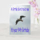 Flying Seagull in a cloudy sky with the bird’s wings out spread and a Birthday greeting.