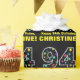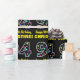 This fun birthday-themed wrapping paper design features a large number "94" filled with a pattern of star shapes of various sizes and colours, along with the message "Happy 94th Birthday,", and a customisable name. The background is coloured black. Birthday themed wrapping paper like this might be used when giving a gift or present in celebration of somebody’s ninety fourth birthday. [~Z0000429]