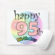 Gelukkige 95ste verjaardag muismat Leuk als cadeau voor iemand die vijfennegentig is geworden. Regenboog kleuren. 95 is in de roze kleur.