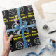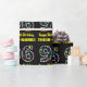 This fun birthday-themed wrapping paper design features a large number "96", filled with a pattern of decorative star shapes having various sizes and colours. It also features the message "Happy 96th Birthday,", and an editable name. The background is coloured black. Birthday themed wrapping paper like this might be used when giving a gift or present in celebration of somebody’s ninety sixth birthday. [~Z0000429]