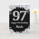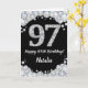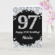 Happy 97th Birthday Black and Silver Glitter Card with personalised name. For further customisation, please click the "Customise it" button and use our design tool to modify this template.