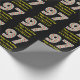 This simple and fun Christmas-themed and birthday-themed December 25th birthday wrapping paper design features a large number "97" with a green, white, and red stripes pattern, along with the message "Happy 97th Birthday & Merry Christmas,", and an editable name. The background is coloured black. Wrapping paper like this might be used when wrapping presents or gifts that are being given to somebody who was born on December 25th (Christmas Day) and who is celebrating their ninety seventh birthday. [~Z0000406]