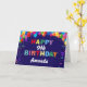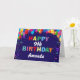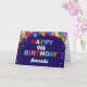 Happy 9th Birthday Colourful Balloons Confetti Navy Blue Card with personalised name. For further customisation, please click the "Customise it" button and use our design tool to modify this template.