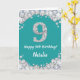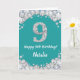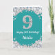 Happy 9th Birthday Teal Turquoise Aqua and Silver Glitter Card with personalised name. For further customisation, please click the "Customise it" button and use our design tool to modify this template.