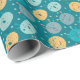 Happy Alien Faces Teal Wrapping Paper