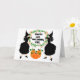 Happy Witches hold a wreath, a cauldron and pumpkins sit beneath. Happy All Hallows Eve!