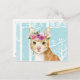 Happy Animal with Flowers in Blue Forest-Cat Kitty Postcard