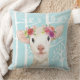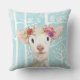 Happy Animal with Flowers in Blue Forest-Sheep Cushion