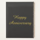 This planner features a collection of different coloured balloons with fireworks overlay throughout showcasing the words Happy Anniversary in a crusive style print font with grey letters gold outline over the top of a white background cover in this Anniversary celebration planner. The planner's pages of are printed on high-quality paper with wire binding and grid transparency with "Happy Anniversary" printed accross the back. This planner includes a monthly overview and weekly planning space made with 60 lbs. paper. This planner will make the perfect gift for yourself or others.