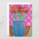 HAPPY ANNIVERSARY! FLORALS AND BLUE VASE CHECKERED HOLIDAY CARD