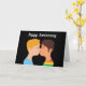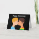 A cute wedding anniversary card for two gay men celebrating their life together. Features two guys sharing a kiss. There is a blonde man with a blue shirt and a brunette guy in a rainbow tee under the text Happy Anniversary. A cute LGBT greeting card that reads I Love You inside or your own custom message.