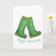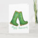 Happy Anniversary illustrated emerald green gardening welly boot card.