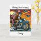 Funny anniversary card for an older couple. An old lady and man riding on a motorcycle. Happy anniversary, I'll always be happy I picked you. Perfect card for an adventurous couple.