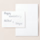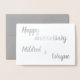 This elegant card is perfect for any wedding anniversary! "Happy anniversary Mildred & Wayne" (replace the names with any desired names) is in brush lettering, in real foil.