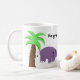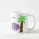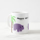 Purple hippos with big grins. Palm trees behind them. A cute saying, 'Happy as a Hippo' the message can be changed if so desired.