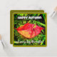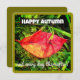 Bright red autumn leaf with Happy Autumn greeting on the front - and a heartfelt wish/verse about a nostalgic Fall-season verse, written by a famous poet Humbert Wolfe (P.L.M.: Peoples, Landfalls, Mountains, 1936) - a perfect way to tell someone you care about, you are thinking about them.