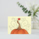 A cute cartoon pumpkin and red heart with a kaleidoscopic texture and swirls on a post card.