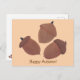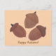 These Happy Autumn postcards feature my painting of three different acorns, in shades of brown. The background colour of light tan can be customised to any colour of your selection. The greeting can be easily customised on the template form. Thank you for shopping CherylsArt on Zazzle.