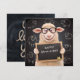 Happy Baaaday Funny Sheep Flat Greeting Card. The artist has left a little space on the blackboard for the recipient to write a personalised message/ name. “We Love You” is written in wool yard on the back of the card.